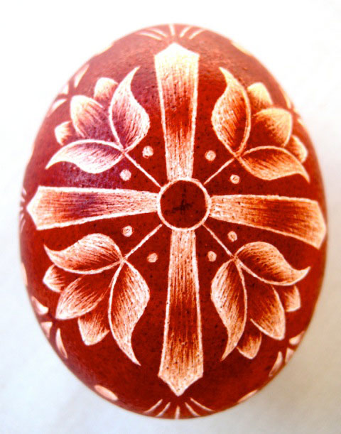 In Hungary, godparents gave egg gifts in front of the church to their godchildren. This custom probably originates from the love feast of the early Christians. Hungarian children exchange decorated eggs (hímestojás) as a token of their friendship at Easter. Little girls seal their friendship with a bride’s plate. It contains a bottle of wine and a large pretzel, surrounded by decorated eggs. A group of girls, usually about eight, accompany the plate. The bride, the recipient girl accepts the gift by taking a few eggs and placing down several of her own, before sending the plate back. Hungarian men often decorate and present eggs themselves – gifts that the girls would treasure for many years.